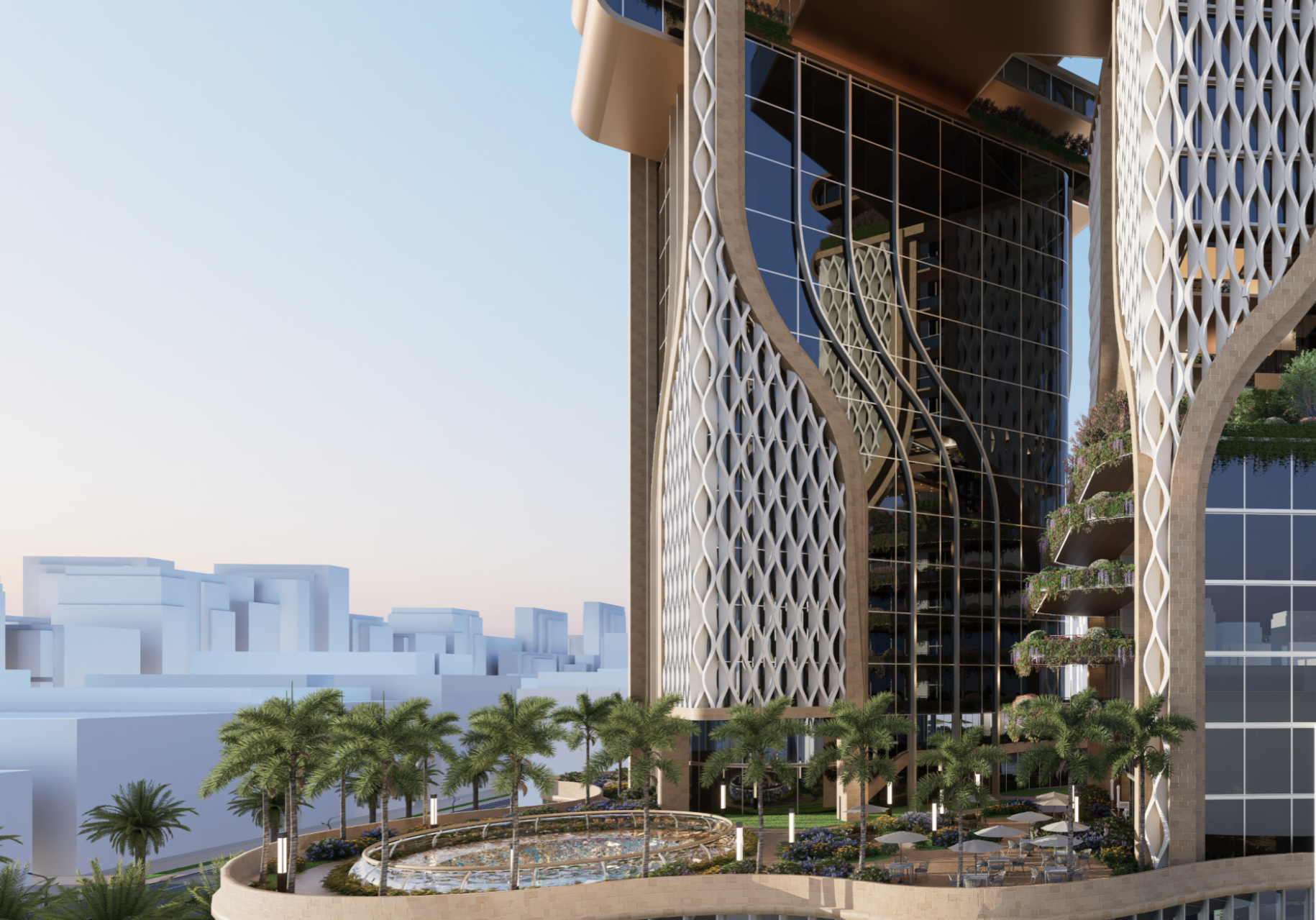 Twin towers—one residential and the other hotel-serviced—with separate entrances for each tower.